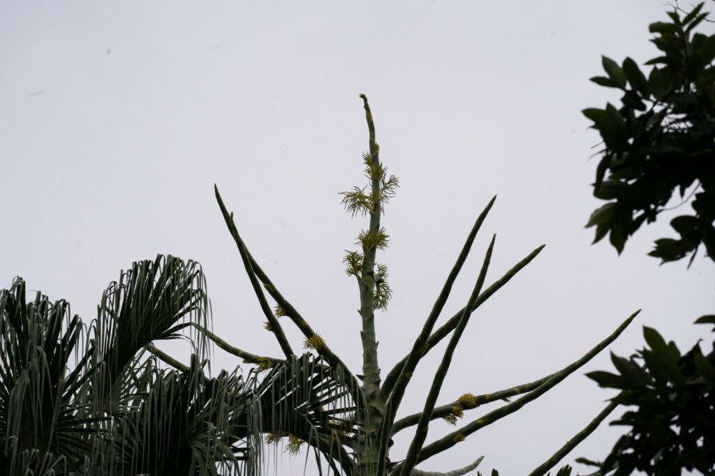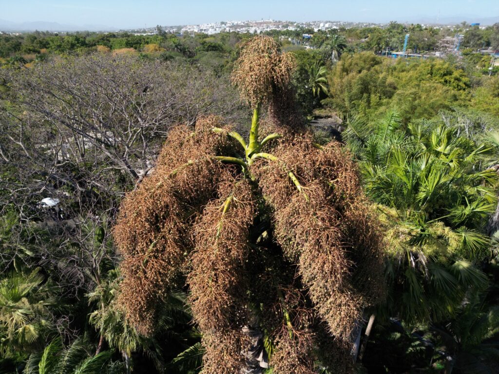 Culiacán, Sinaloa.- Un suceso histórico de la naturaleza está por llegar a su fin: la primera palmera Talipot (Corypha umbraculifera) que floreció en México y que se encuentra en la fase final de su ciclo de vida, la cual es una especie monocárpica que sólo florece una vez a lo largo de su vida y después muere, por lo cual te invitamos a admirar este proceso en Jardín Botánico Culiacán.