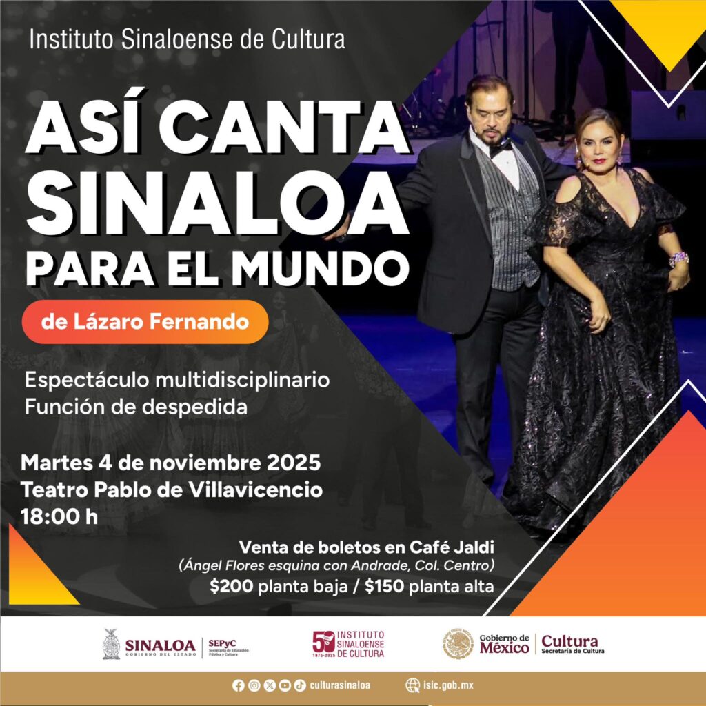 Culiacán, Sinaloa.- El Instituto Sinaloense de Cultura, ISIC, anuncia la última función de la producción Así Canta Sinaloa para el Mundo, en su primera temporada, una obra musical con humor blanco en reconocimiento a los compositores sinaloenses.
