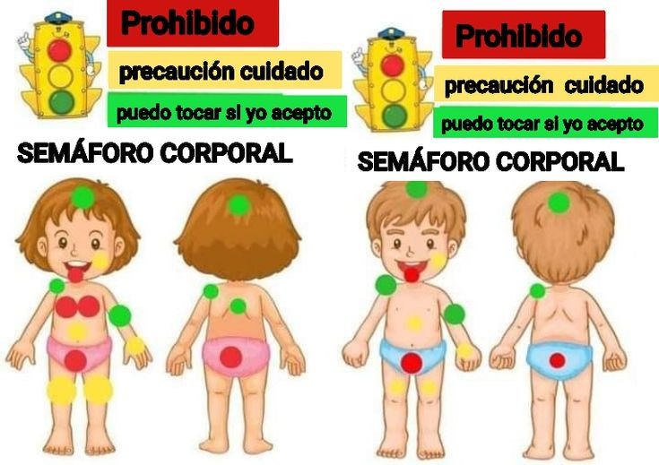 “Les enseño lo que es el semáforo corporal, una niña, un niño, círculos verdes, círculos rojos, los nombres de las partes del cuerpo, tal cual su nombre, y ellos van identificando qué partes pueden tocar, qué partes son privadas. Por ejemplo, la cabeza tiene un círculo verde, es permitido tocar y si tocan los pechos, el pene es un círculo rojo, señal de peligro y lo tienen que hablar con mamá o papá o alguna persona de su confianza”.