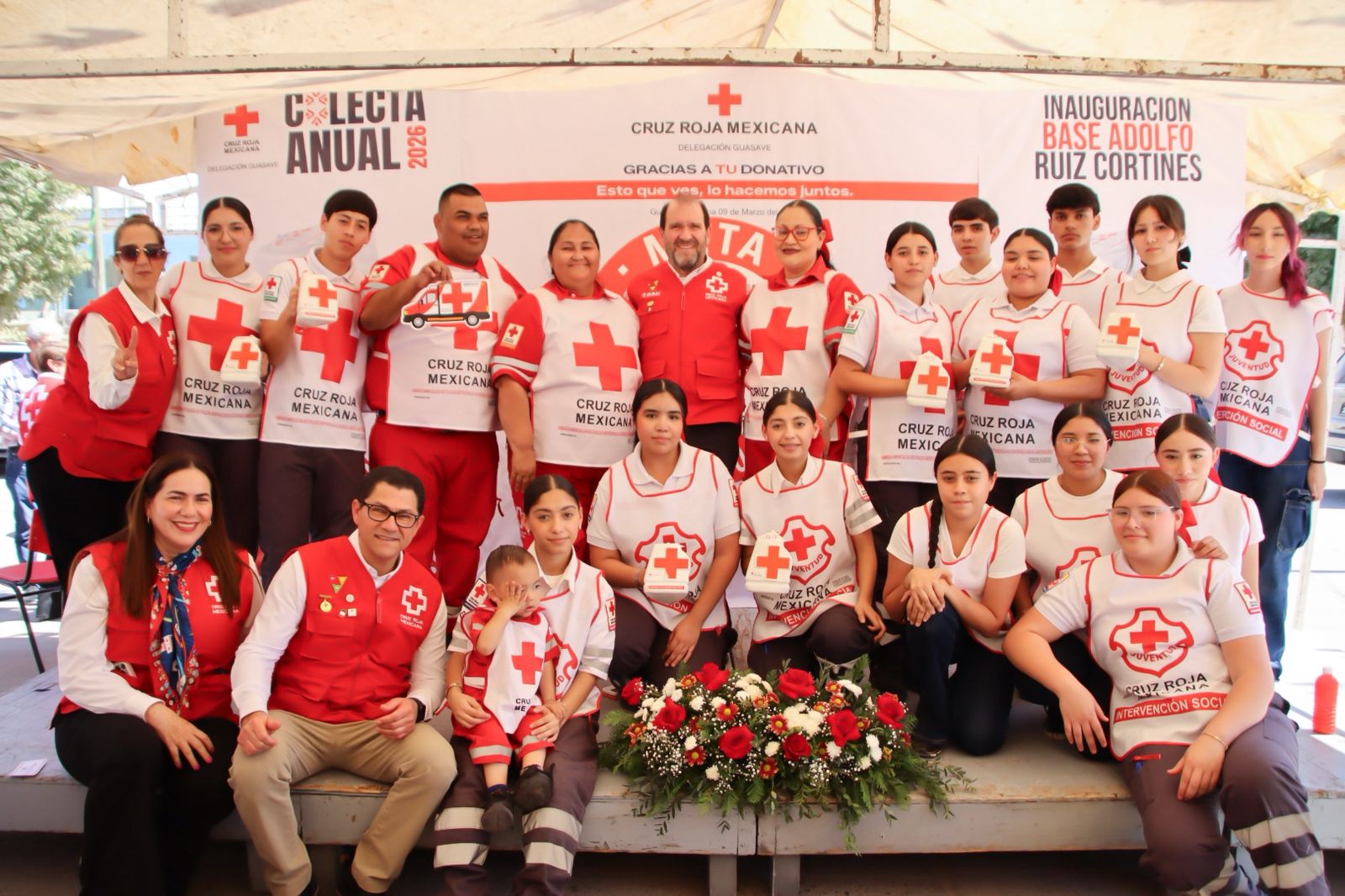 Durante el evento, autoridades de Cruz Roja, voluntarios y representantes de la sociedad guasavense realizaron también el corte de listón de la reapertura y remodelación de la Base Ruiz Cortines, un espacio estratégico que permitirá mejorar la capacidad de respuesta ante emergencias y acercar los servicios de la institución a la población de esta importante sindicatura.