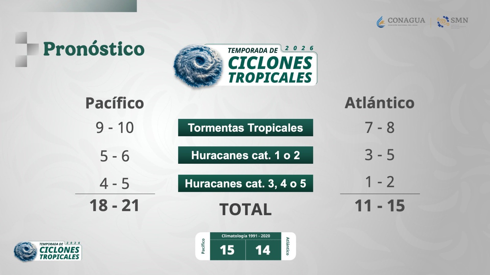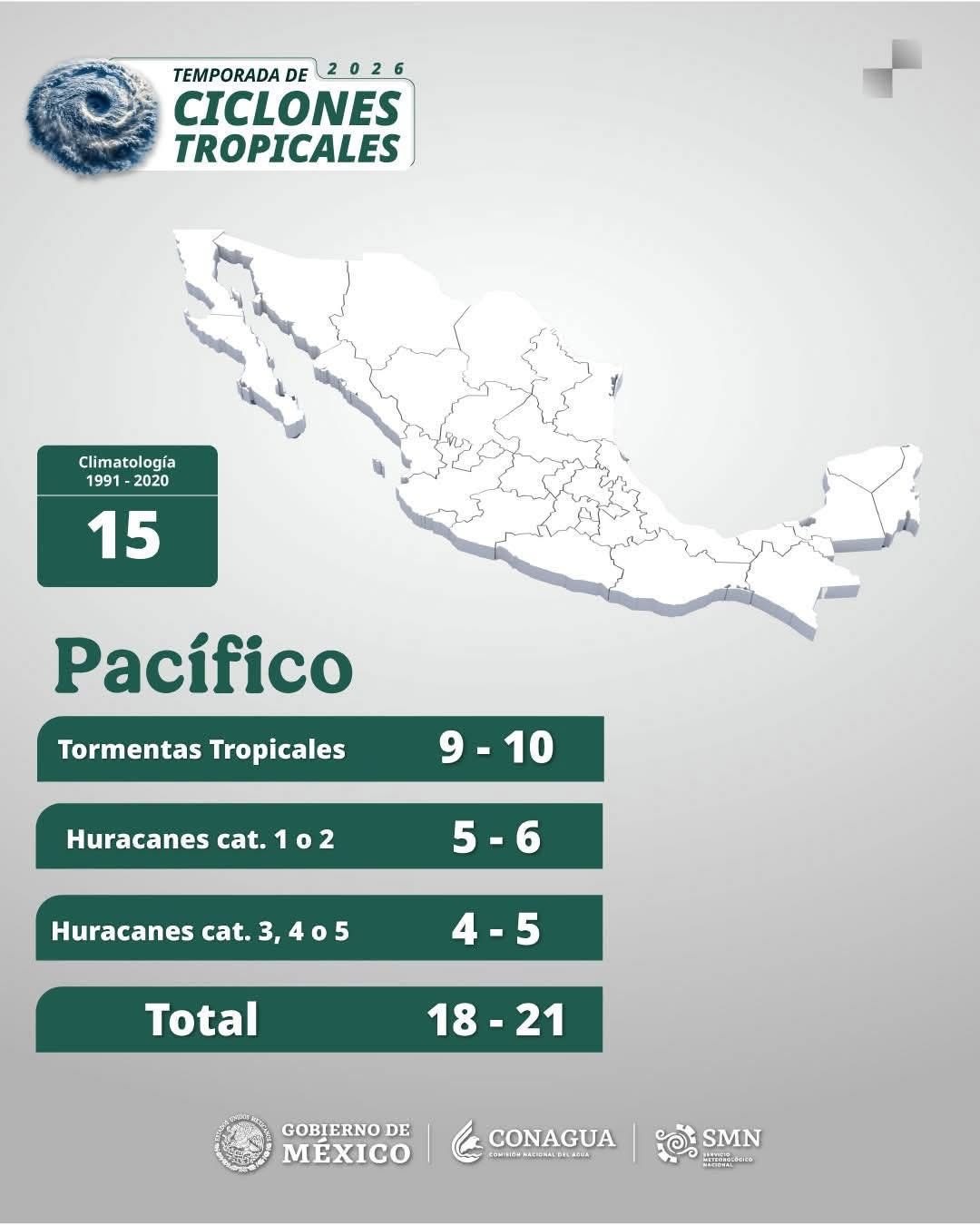 Culiacán, Sinaloa | El pronóstico para la temporada de lluvias y ciclones 2026 en el Océano Pacífico estima la formación de entre 18 y 21 sistemas meteorológicos, de los cuales se prevén de 9 a 10 tormentas tropicales, de 5 a 6 huracanes de categoría 1 y 2, y de 4 a 5 huracanes de categoría mayor, es decir, entre 3 y 5. Ante este escenario, el coordinador municipal de Protección Civil, Jesús Bill Mendoza Ontiveros, destacó que Culiacán ya cuenta con la estructura operativa necesaria para actuar ante cualquier eventualidad, mediante la instalación del Consejo Municipal de Protección Civil y la coordinación permanente con el Sistema Municipal de Protección Civil.