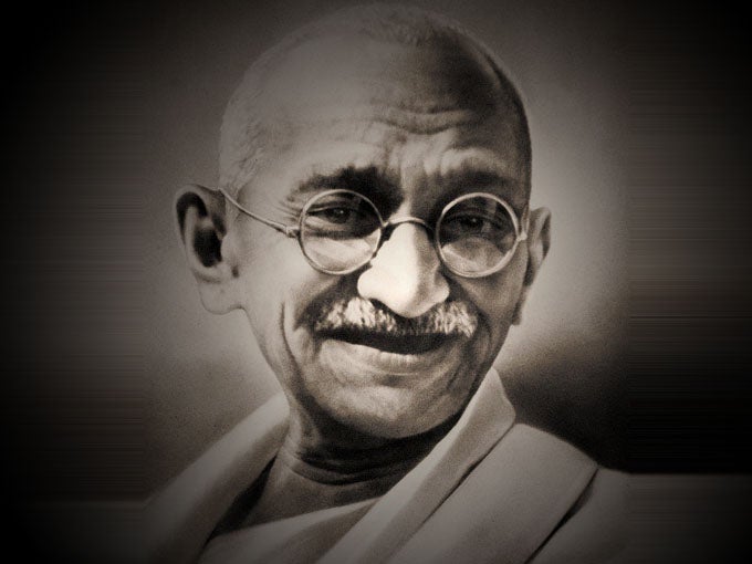 Tras estudiar derecho, Gandhi se trasladó a Sudáfrica en 1893, donde permaneció durante 21 años asistiendo a la comunidad india que sufría discriminación y racismo. En ese periodo desarrolló los principios de resistencia pacífica y desobediencia civil sin violencia. En 1915 regresó a la India, desde donde impulsó diversas acciones contra la opresión colonial, como la Campaña de No Cooperación y la Marcha de la Sal, siempre desde una postura pacífica.