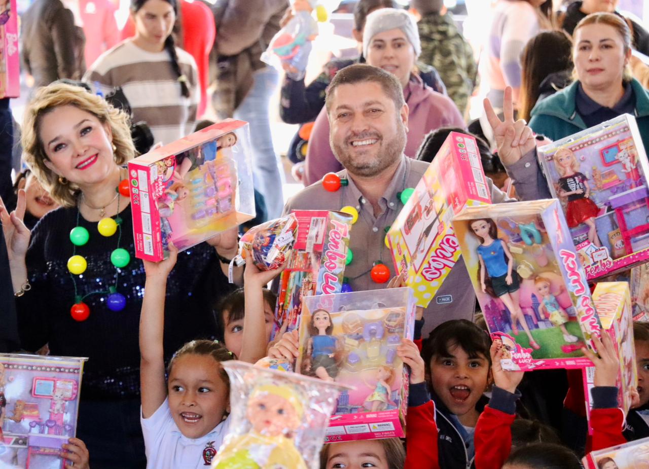 Cabe destacar que simultáneamente la directora del DIF Municipal, Kiria García, visitó la comunidad de El Varejonal, La Apoma y Batopito para hacer entrega de regalos y apoyos invernales, con ello sumar más sonrisas de niñas, niños y familias completas. El evento culminó en la cabecera municipal donde las autoridades estatales y municipales desearon ¡Feliz Navidad!