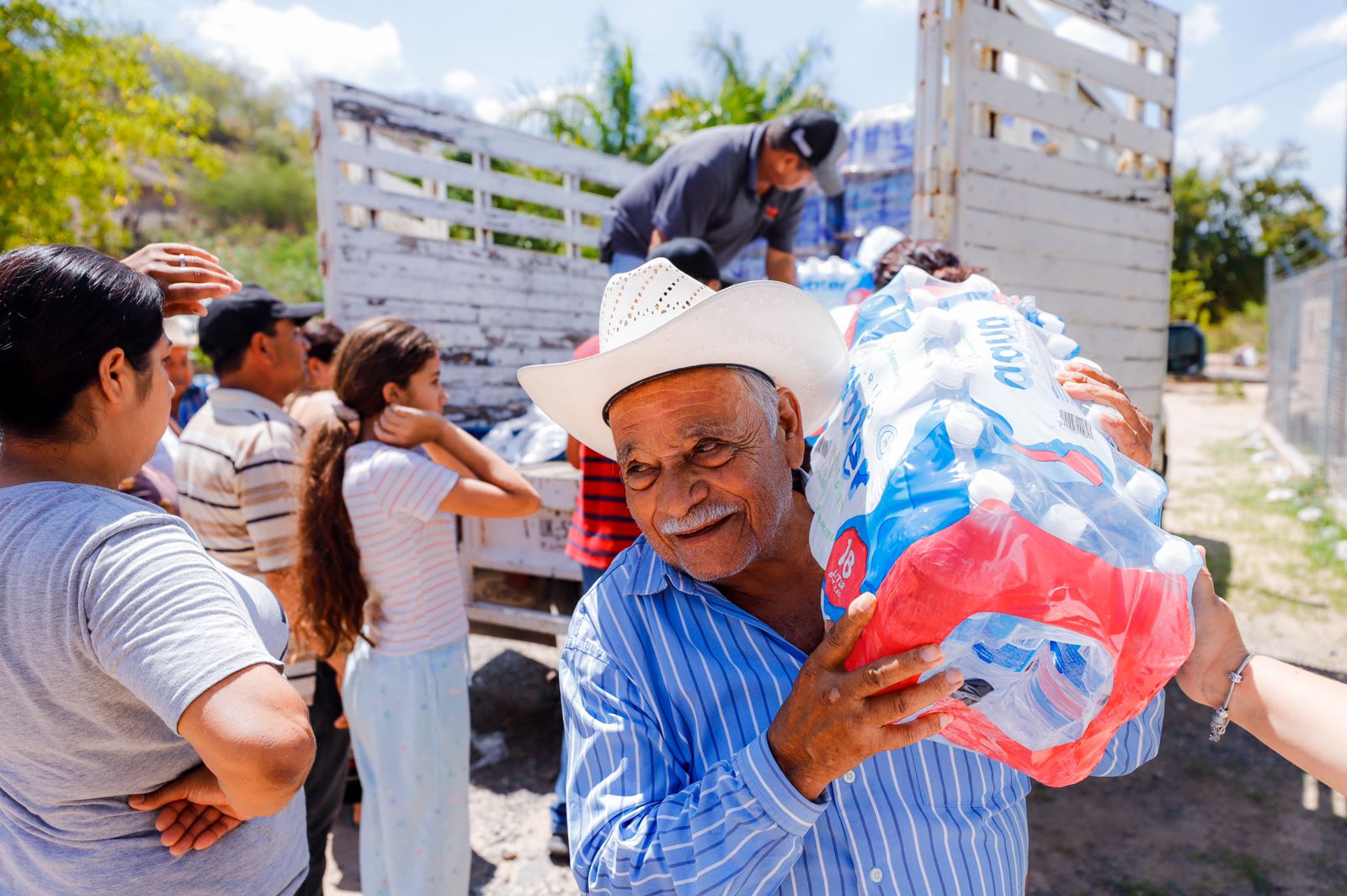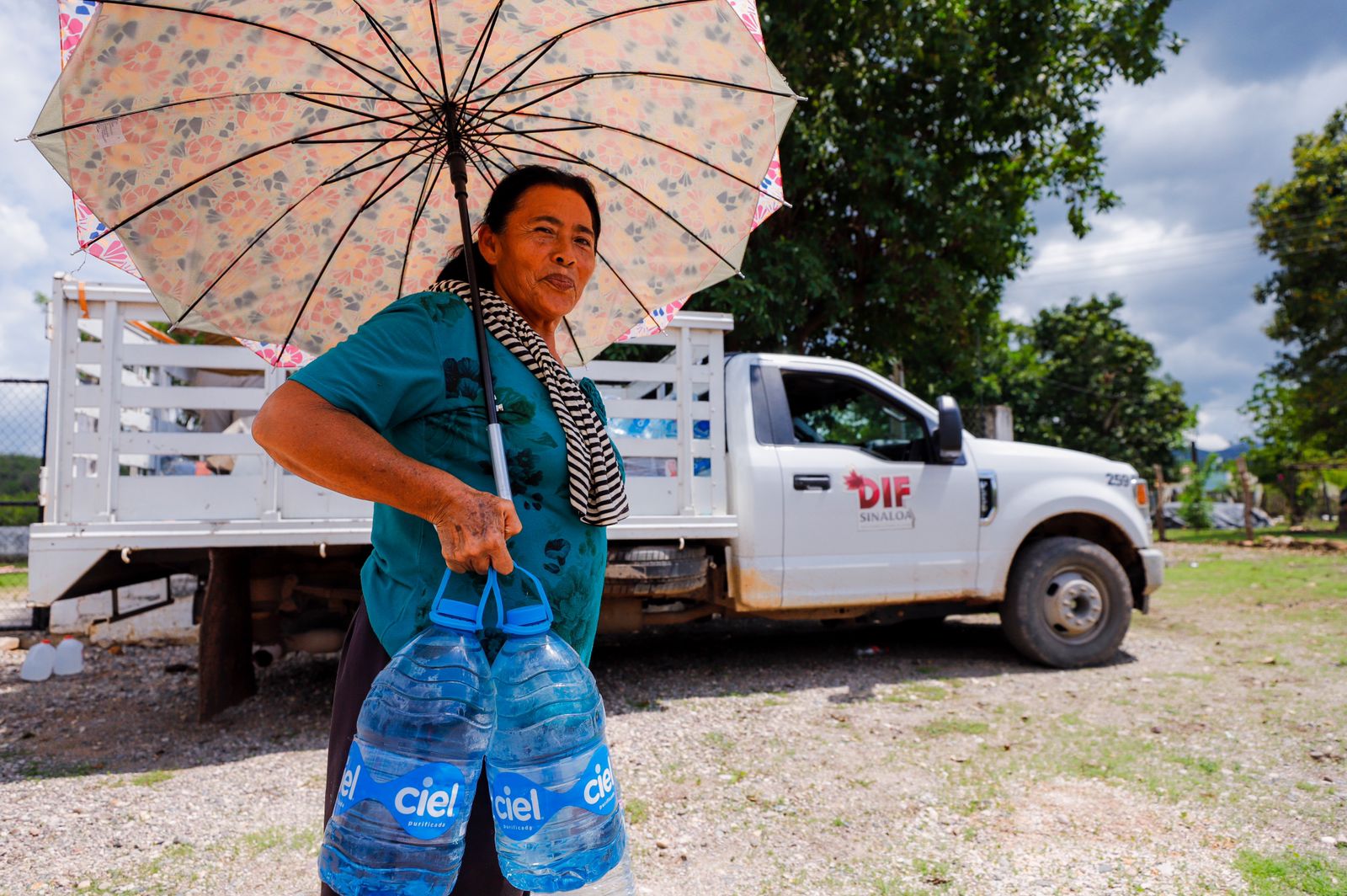 Culiacán, Sinaloa | En seguimiento al compromiso que hizo el Gobernador de Sinaloa, Rubén Rocha Moya, de entregar de manera inmediata el agua para consumo humano que las y los ciudadanos donaron durante el Aquatón 2023 y que es para beneficio de los municipios afectados por el problema de sequía, personal del Sistema DIF Sinaloa por indicación de la doctora Eneyda Rocha Ruiz, han realizado entregas en 166 comunidades de 16 municipios de Sinaloa, el agua se entrega casa por casa y de manera directa.