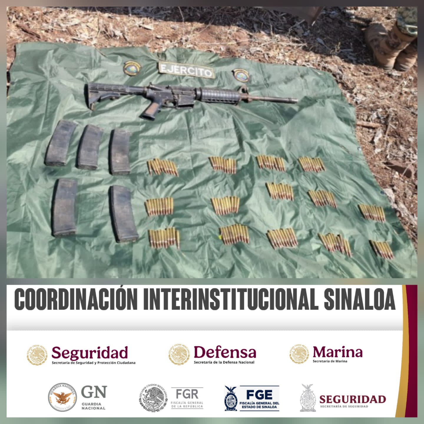 Elementos del Ejército Mexicano, en coordinación con la Guardia Nacional, la Secretaría de Marina, la Secretaría de Seguridad y Protección Ciudadana, la Fiscalía General de la República, la Fiscalía General del Estado y la Secretaría de Seguridad Pública del Estado, a través de la Policía Estatal Preventiva, aseguraron un arma larga, cargadores y municiones.