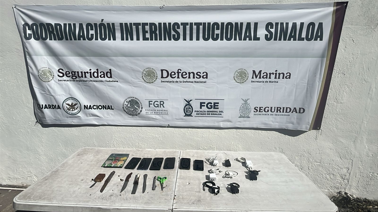 Elementos de la Secretaría de Seguridad Pública de Sinaloa, a través del Grupo de Operaciones Especiales Sinaloa (GOES) de la Policía Estatal Preventiva, en coordinación con el Ejército Mexicano, la Guardia Nacional, la Secretaría de Marina, la Secretaría de Seguridad y Protección Ciudadana, la Fiscalía General de la República y la Fiscalía General del Estado, implementaron una nueva revisión en el Centro Penitenciario Aguaruto este miércoles, donde se aseguraron celulares y otros objetos prohibidos.