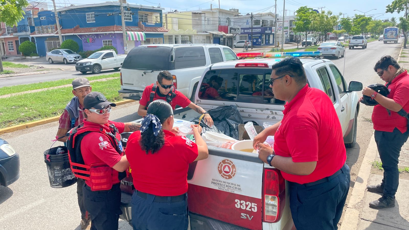 Mazatlán, Sinaloa | Con la finalidad de prevenir afectaciones por las temperaturas elevadas que se han sentido en las últimas semanas, la Coordinación de Protección Civil Municipal en su labor de apoyo a la sociedad visitó varios puntos de la ciudad para entregar bebidas hidratantes.