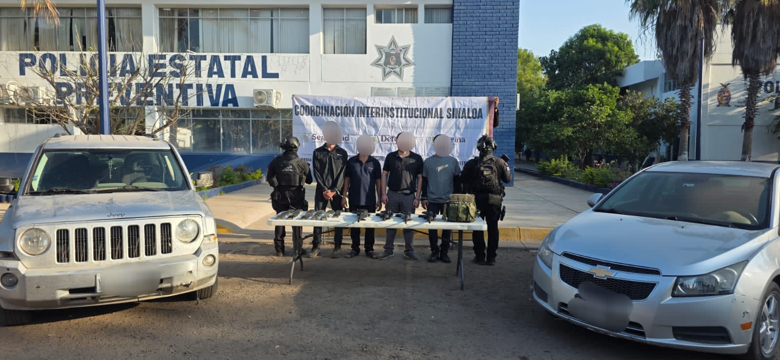 Culiacán, Sinaloa | Elementos de la Secretaría de Seguridad Pública del Estado, a través del Grupo de Operaciones Especiales de Sinaloa (GOES) de la Policía Estatal Preventiva, en coordinación con el Ejército Mexicano, la Guardia Nacional, la Secretaría de Marina, la Secretaría de Seguridad y Protección Ciudadana, la Fiscalía General de la República y la Fiscalía General del Estado, detuvieron en Culiacán a cuatro civiles; les aseguraron fusiles, cargadores, cartuchos y vehículos.
