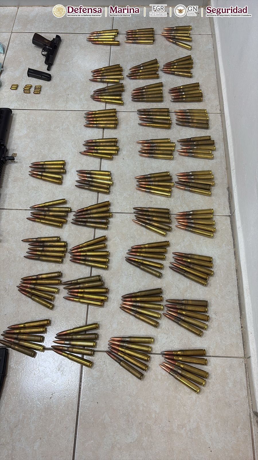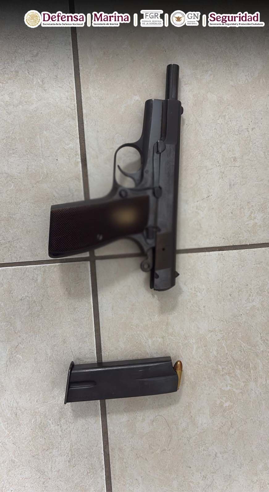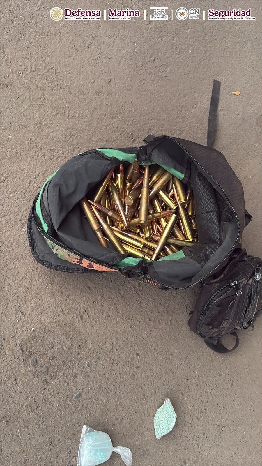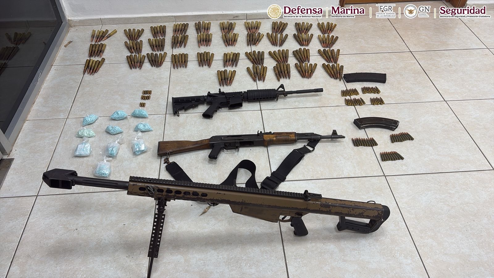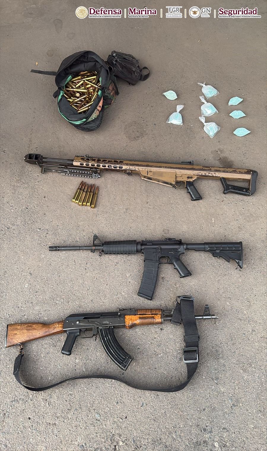 Para prevenir alguna conducta ilícita que pudiera poner en riesgo a la población, los efectivos les dieron alcance y detuvieron a los cinco hombres, uno de los cuales fue identificado como Horacio “N”. Tras efectuarles una revisión de seguridad, en apego a los protocolos de actuación, les hallaron tres armas largas, una de ellas un Barrett calibre 50, una mochila con 213 cartuchos útiles para arma larga, un arma corta abastecida con 13 cartuchos y varias bolsitas con pastillas de fentanilo.