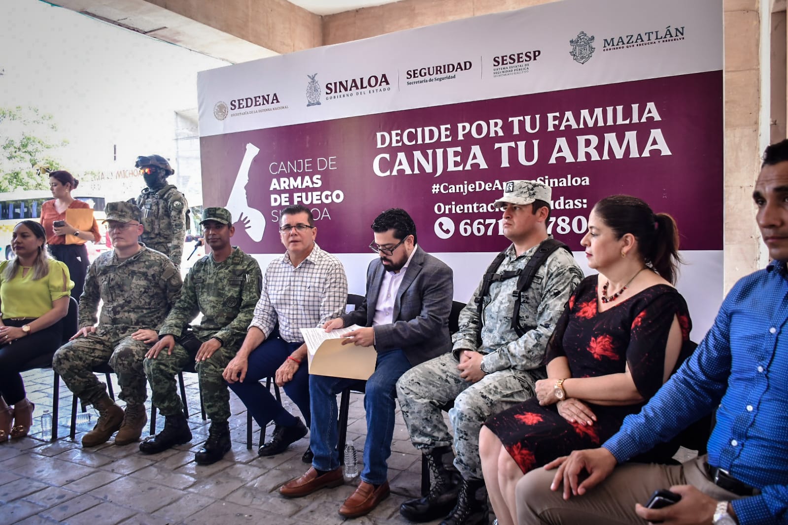 Ricardo Jenny Del Rincón, Secretario Ejecutivo del Sistema Estatal de Seguridad Publica, explicó que el canje de armas y municiones es completamente anónimo, voluntario y sin cuestionamientos. Destacó que en el 2022 en Mazatlán se recibieron 95 armas y más de 8 mil municiones, colocándolo como el municipio con mayor canje en el estado.