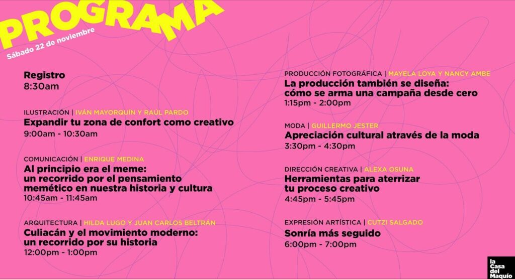 El Festival Creativo reúne a parte de las voces destacadas en el campo de la arquitectura, la fotografía, la ilustración y la moda, en una jornada intensa de experiencias en vivo, pensada para conectar, inspirar y compartir procesos entre quienes están construyendo el futuro creativo de Sinaloa y México.