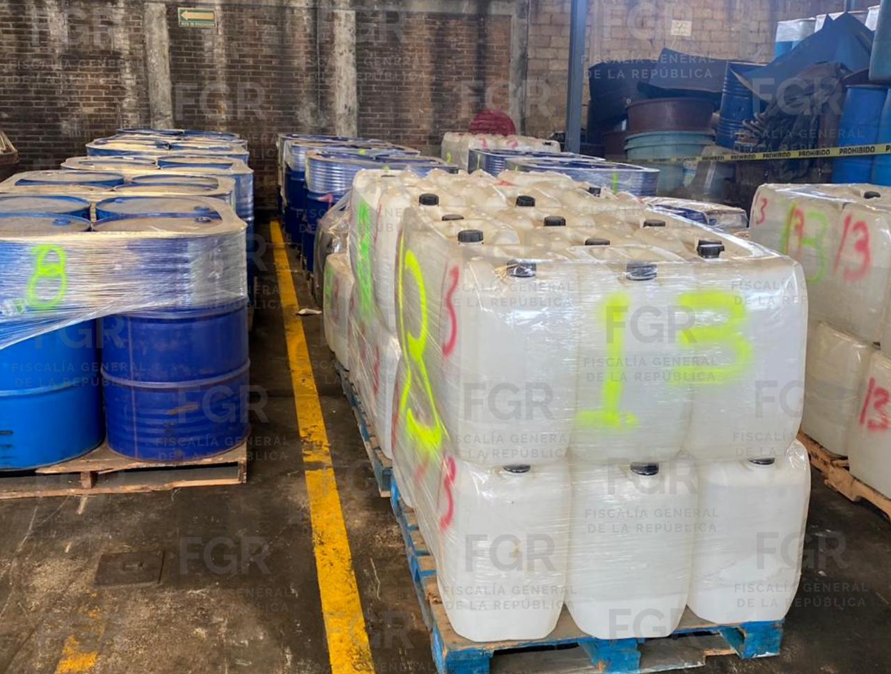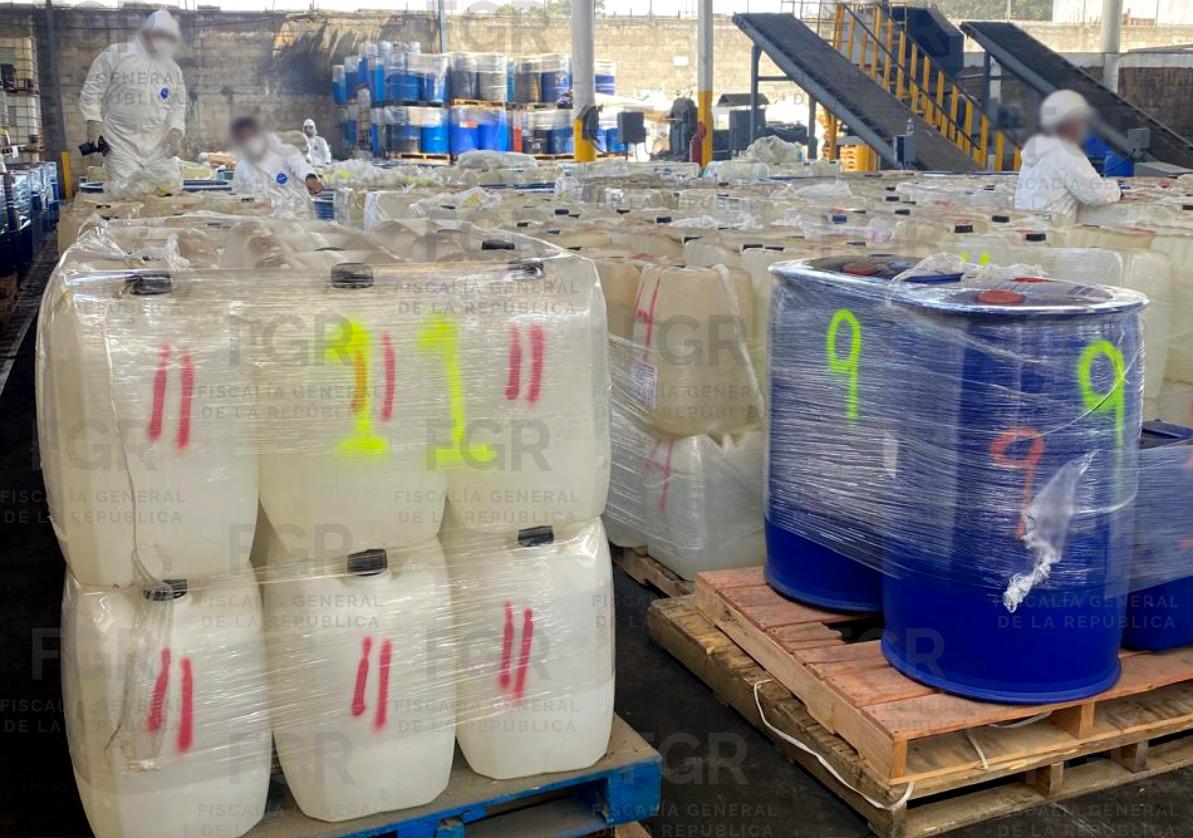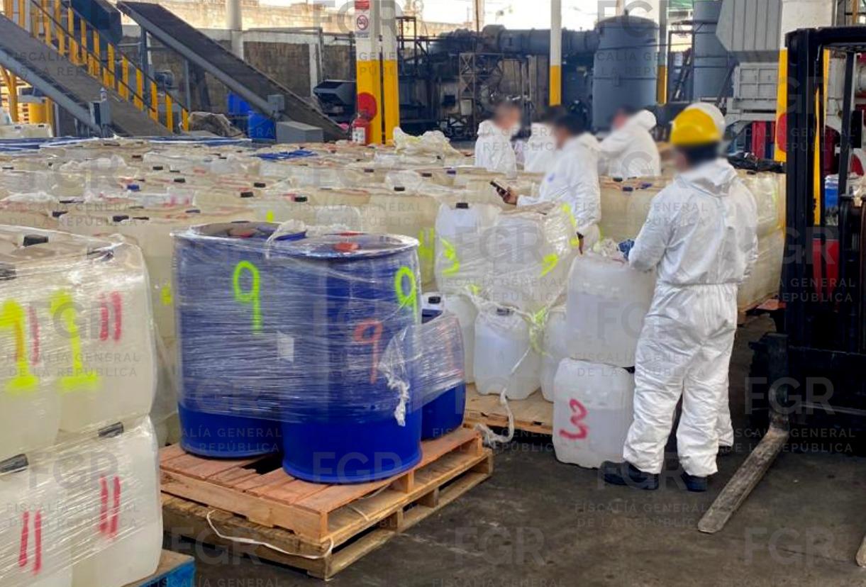 En el evento se destruyeron 33 toneladas 594 kilos 200 gramos 600 miligramos y 88 mil 470 litros 830 mililitros de sustancias y precursores químicos como acetato de plomo, hidróxido de sodio, tolueno, ácido clorhídrico, acetona, alcohol bencílico, etanol, ácido acético, ácido tartárico, alcohol metílico, cloruro de calcio, ácido sulfúrico, metilformamida, entre otros.