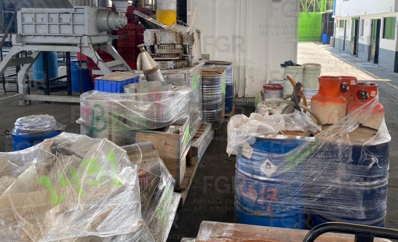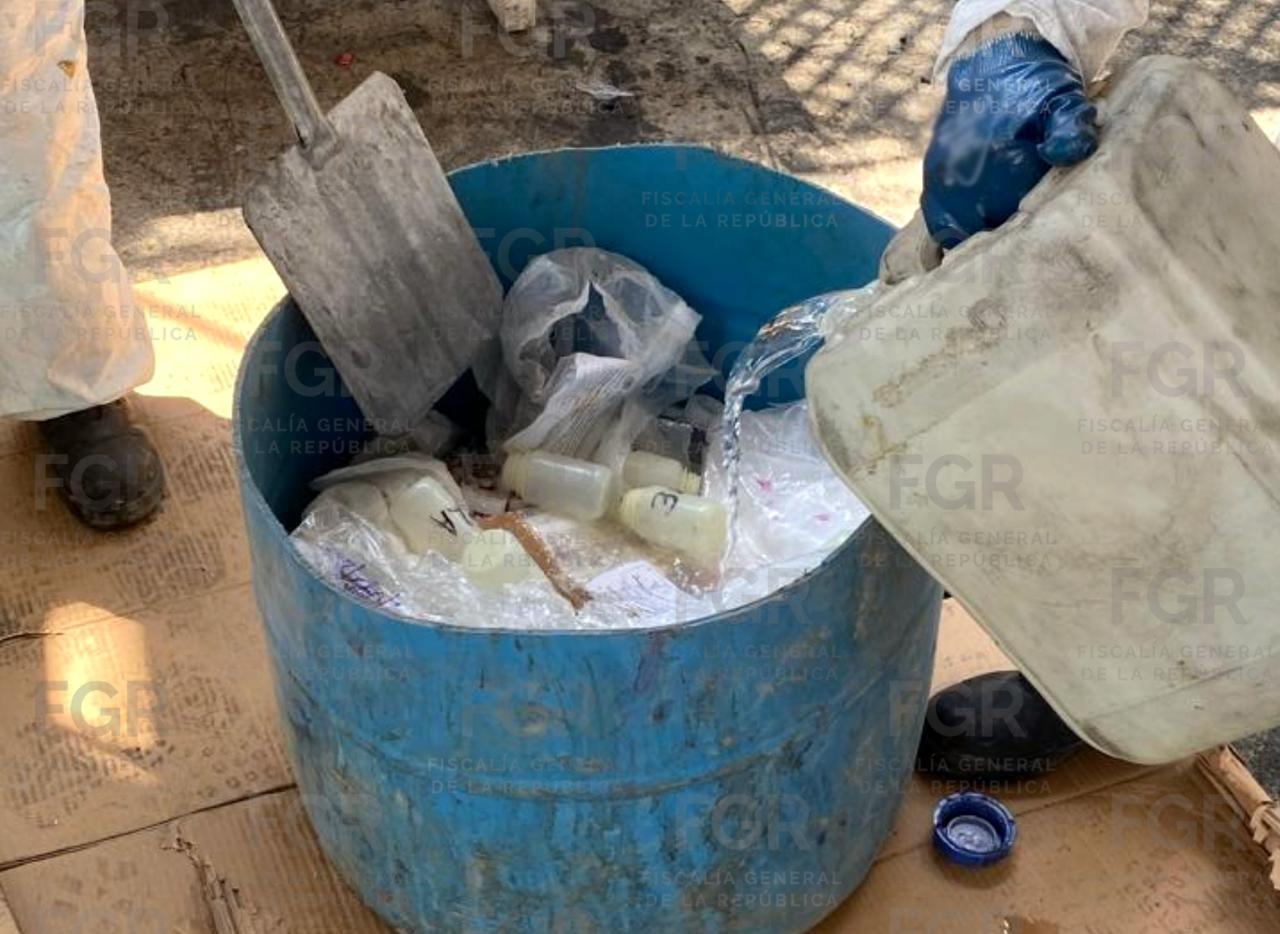 También se incineraron 212 pastillas de fentanilo, 15 kilos 991 gramos 500 miligramos de fentanilo y 49 objetos del delito como tanques de gas, ollas de metal, lámparas, reactor metálico y una centrifugadora.