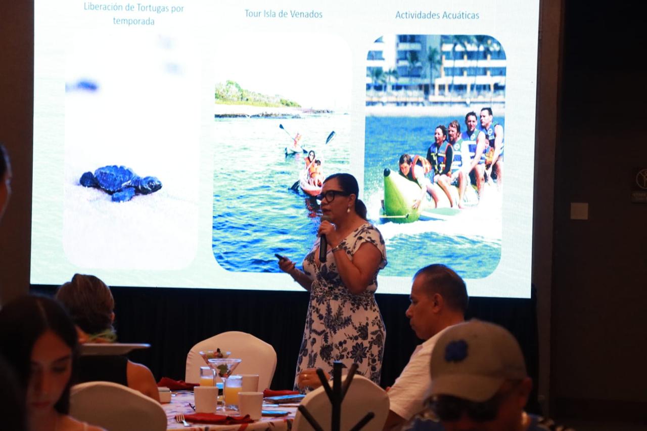 Previo a la entrega de la placa, la secretaria de Turismo de Sinaloa le dio la bienvenida a un grupo de meeting planners de Pulso Eventos, que realizaba un fam trip para conocer todo lo que Mazatlán ofrece en el segmento de la industria de congresos y convenciones y de esta manera atraer más eventos para el puerto.