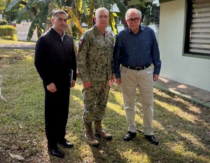 “Recibimos la visita del general secretario de la Defensa Nacional, Ricardo Trevilla y del secretario de Seguridad Pública y Protección Ciudadana, Omar García Harfuch, quienes venían acompañados de sus respectivos equipos, lo que nos permitió tener una reunión de trabajo fructífera. Se ratifica el apoyo irrestricto de la presidenta de la República, Claudia Sheinbaum, de las Fuerzas Armadas, de la Secretaría de Seguridad y Protección Ciudadana”, comentó el gobernador.