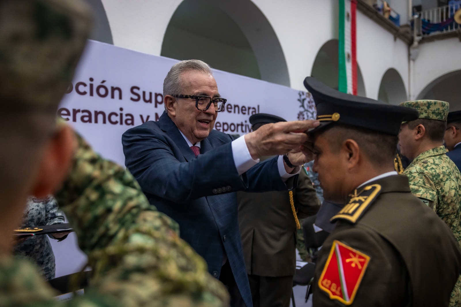 En este marco, se hicieron entrega de ascensos a personal del Ejército Mexicano, Fuerza Aérea y Guardia Nacional