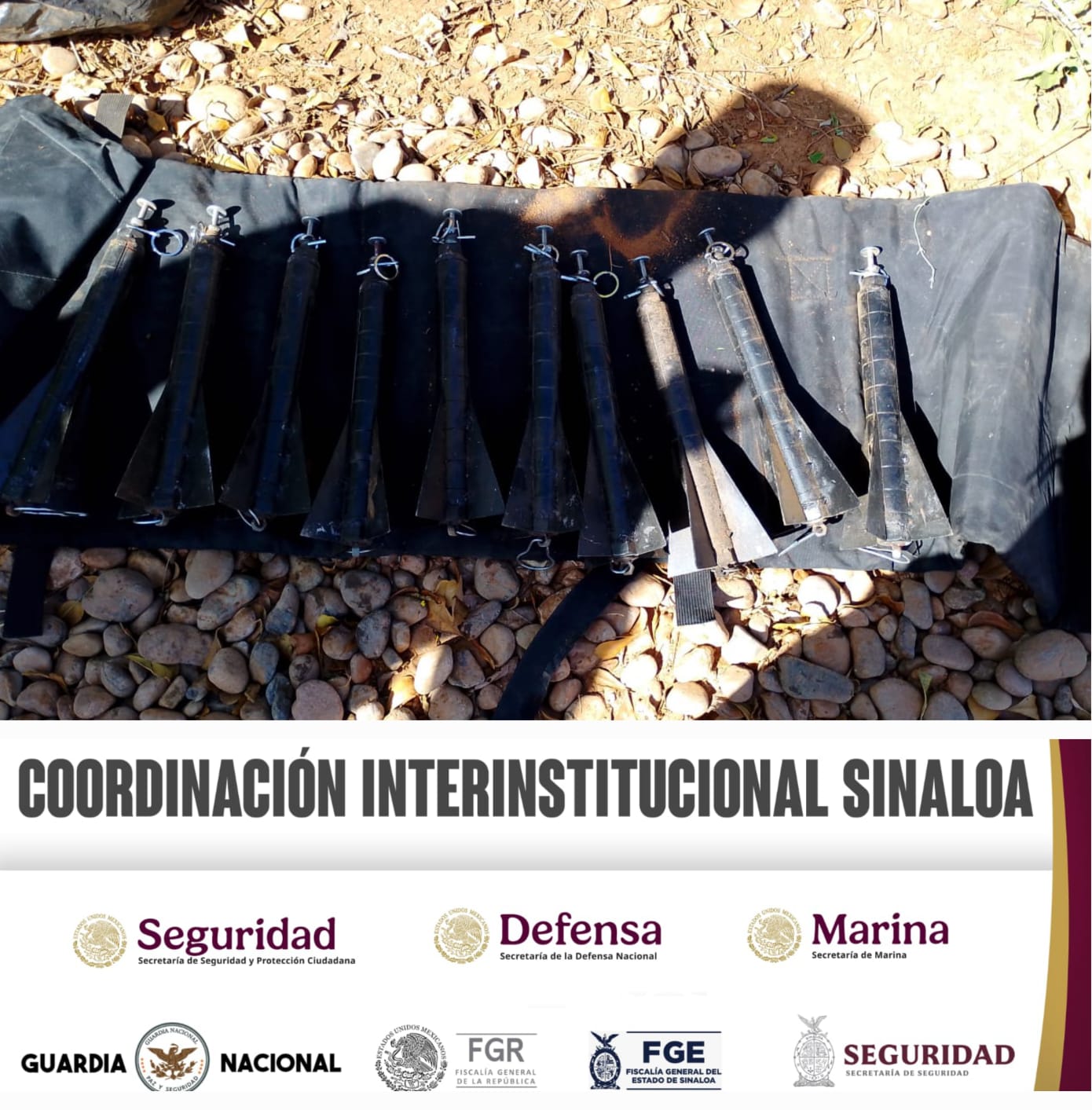 Elementos del Ejército Mexicano, en coordinación con la Guardia Nacional, la Secretaría de Marina, la Fiscalía General de la República, la Fiscalía General del Estado y la Secretaría de Seguridad Pública de Sinaloa, aseguraron artefactos explosivos improvisados en el municipio de Culiacán.