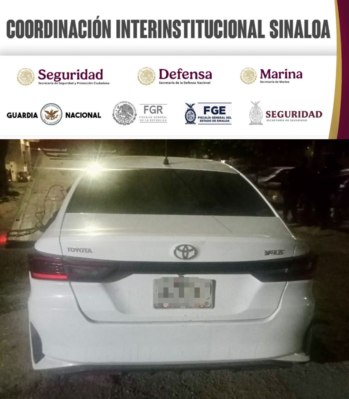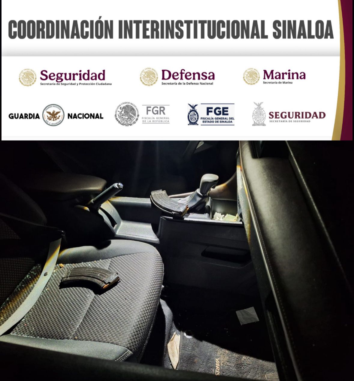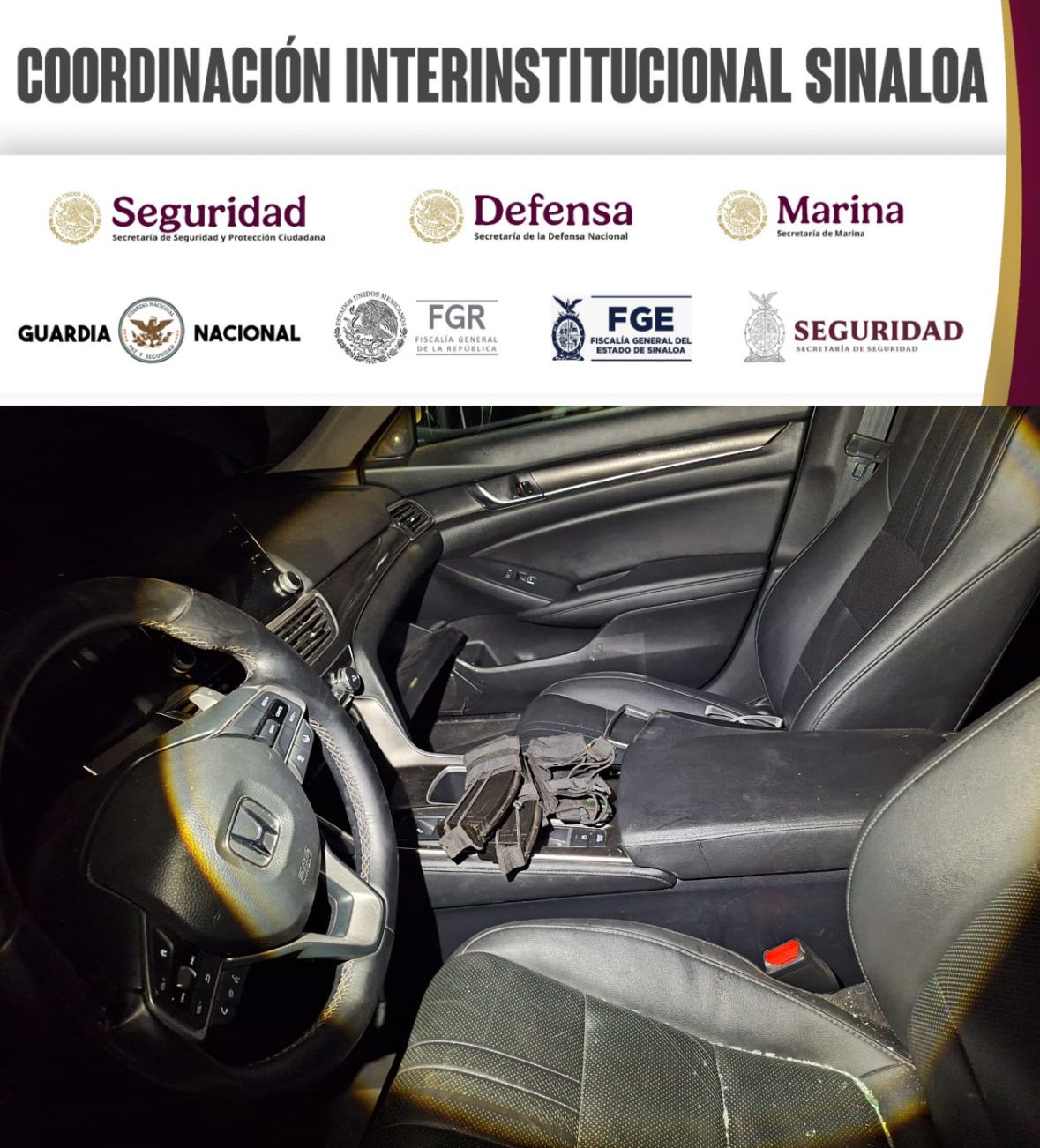 Elementos de la Secretaría de Seguridad Pública de Sinaloa, a través de la Policía Estatal Preventiva y la Policía Municipal, en coordinación con el Ejército Mexicano, la Guardia Nacional, la Secretaría de Marina, la Secretaría de Seguridad y Protección Ciudadana, la Fiscalía General de la República y la Fiscalía General del Estado, aseguraron dos vehículos con reporte de robo y municiones para fusil en Culiacán.