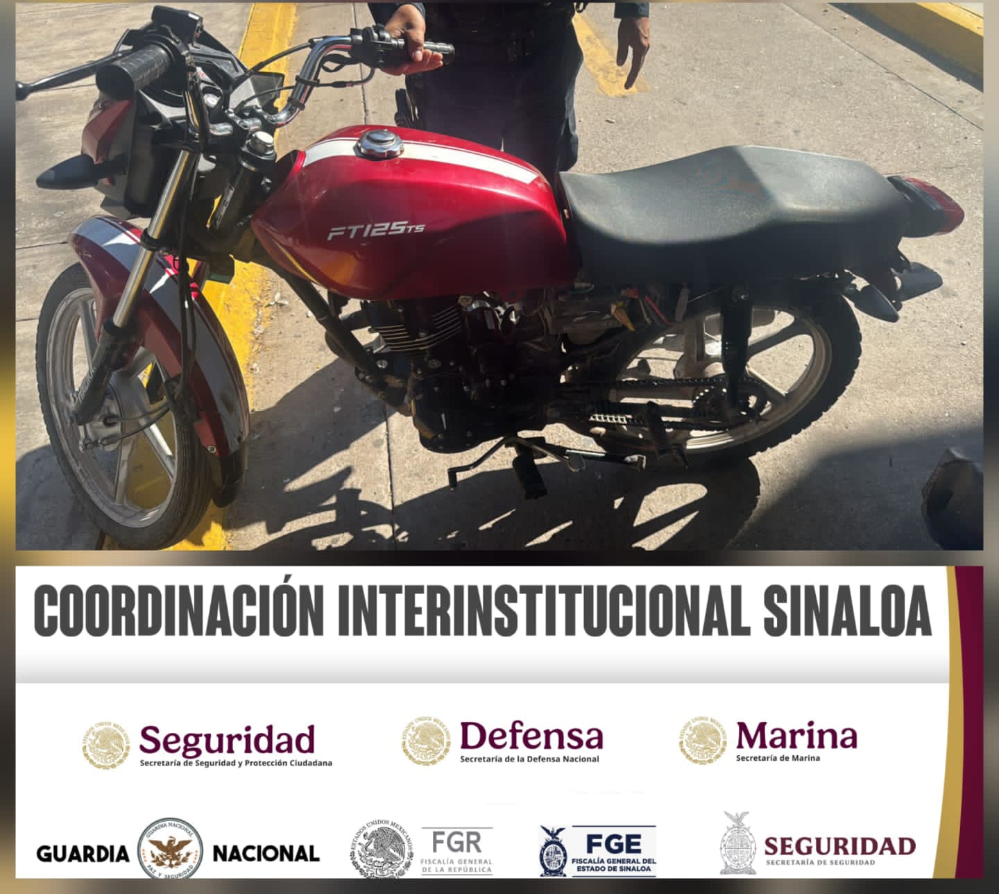 Culiacán, Sinaloa | Elementos de la Secretaría de Seguridad Pública de Sinaloa, a través de la Policía Estatal Preventiva, en coordinación con el Ejército Mexicano, la Guardia Nacional, la Secretaría de Marina, la Secretaría de Seguridad y Protección Ciudadana, la Fiscalía General de la República y la Fiscalía General del Estado, detuvieron a un menor de edad y aseguraron una motocicleta en Culiacán.