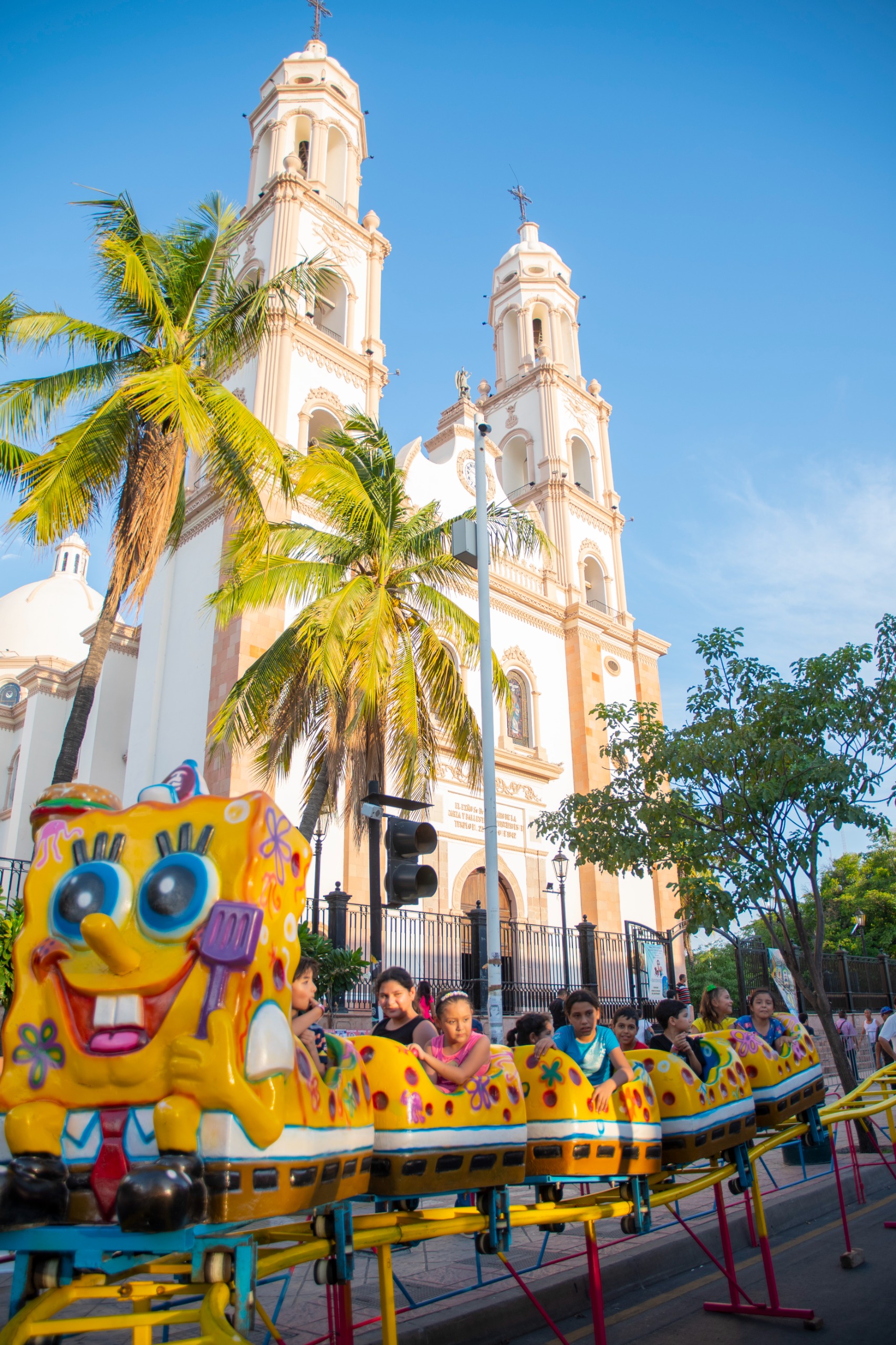 La plazuela Álvaro Obregón y la imponente iglesia Nuestra Señora del Rosario, dio la bienvenida a través de la rueda de la fortuna, seguida por las sillas alpinas, remolino, Bob Esponja, caballitos, tacitas del Chavo del 8, sillitas voladoras, Buggies de vuelta, uno de los preferidos por los niños, picolos, entre otros.