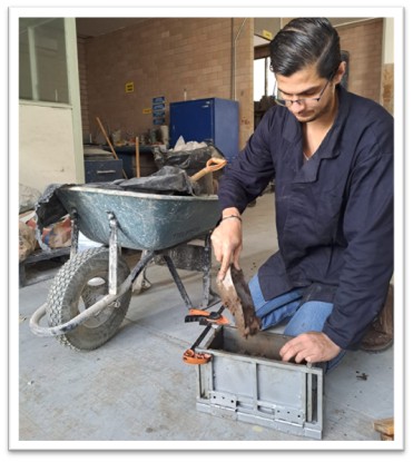“Se empezaron a realizar pruebas para poder elaborar bloques a base de una técnica de estabilización que es el suelo-cemento, normalmente es una técnica que se utiliza en el mejoramiento de suelos, ya que la arcilla no tiene características favorables, presenta expansión, retracción al momento de secado, entonces, al estabilizarse con cemento, mejora sus capacidades mecánicas, también el suelo tiene características favorables térmica y acústicamente, evaluadas en la investigación”.