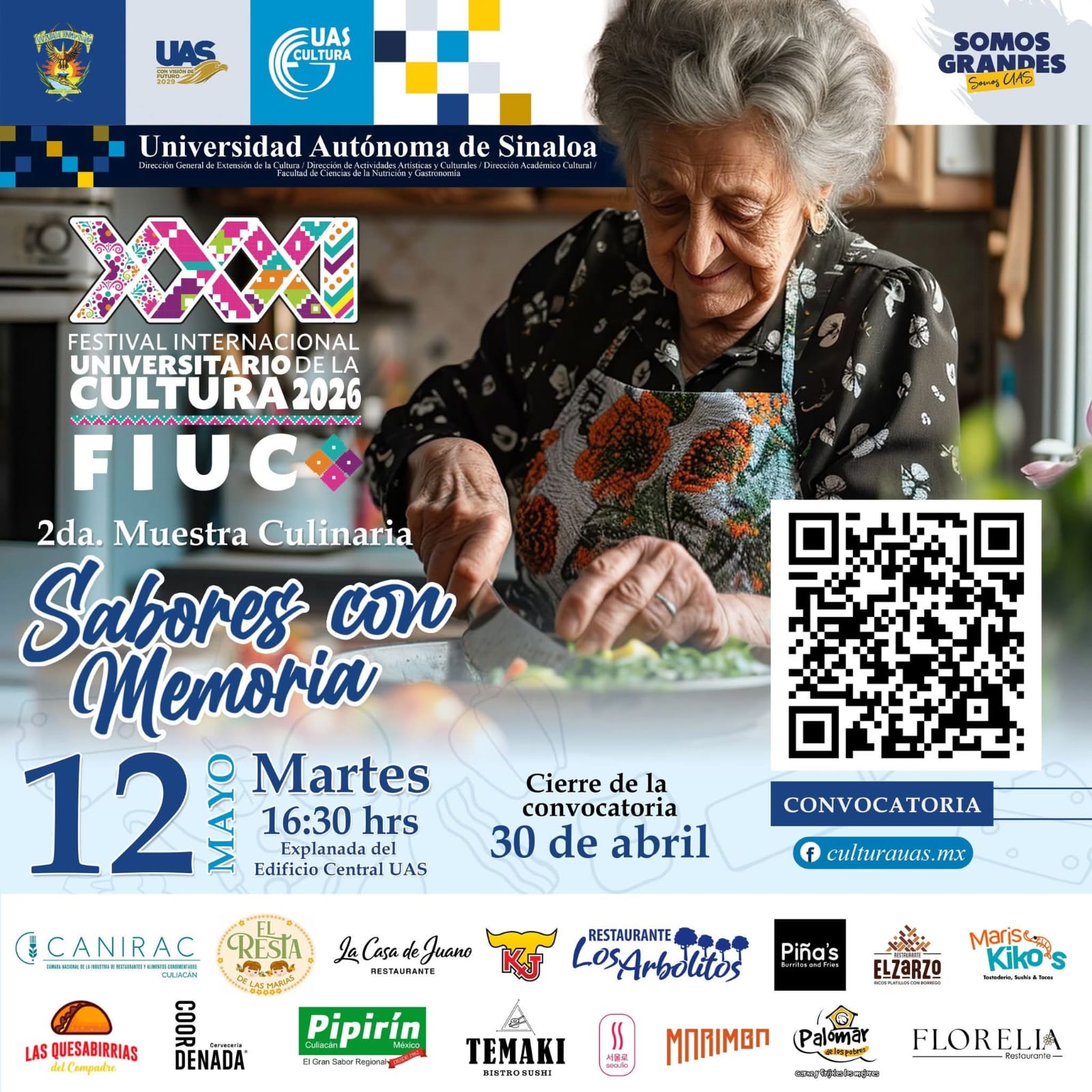 Jesús Manuel Acosta López, subdirector de Actividades Artísticas y Culturales, señaló que este evento, enmarcado en el XXXI Festival Internacional Universitario de la Cultura, será un espacio de encuentro donde la cocina funcione como un puente entre generaciones, identidad y tradición, esta muestra se llevará a cabo el próximo 12 de mayo, a las 4:30 horas, en la explanada del Edificio Central de la UAS.
