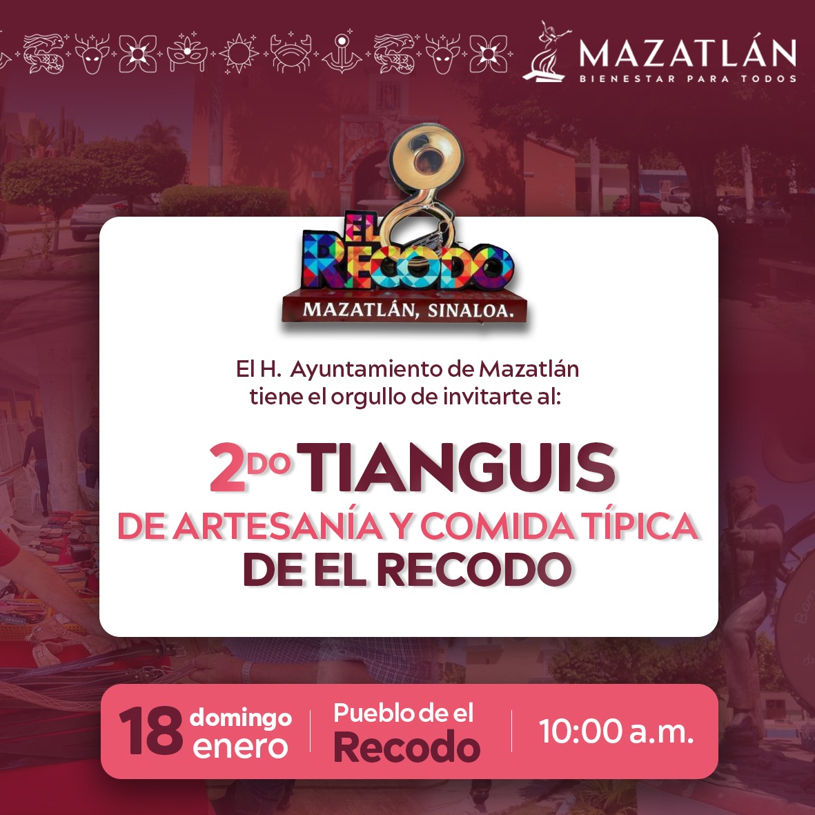 Mazatlán, Sinaloa | Refrendando el compromiso de impulsar la reactivación económica en la zona rural, el Gobierno Municipal de Mazatlán, encabezado por la Presidenta Estrella Palacios Domínguez, invita a la ciudadanía a participar en la celebración de la segunda edición del Tianguis de Artesanías y Comida Típica de El Recodo.