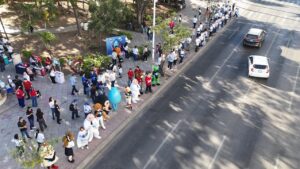 El Gerente General de JAPAC, Roberto Zazueta Tapia acompañado del Vocal Ejecutivo de CEAPAS, Abraham Bello Esquivel, compartieron con automovilistas y peatones folletos informativos, bolsas ecológicas, 300 árboles y plantas, así como material didáctico de cuidado del agua.