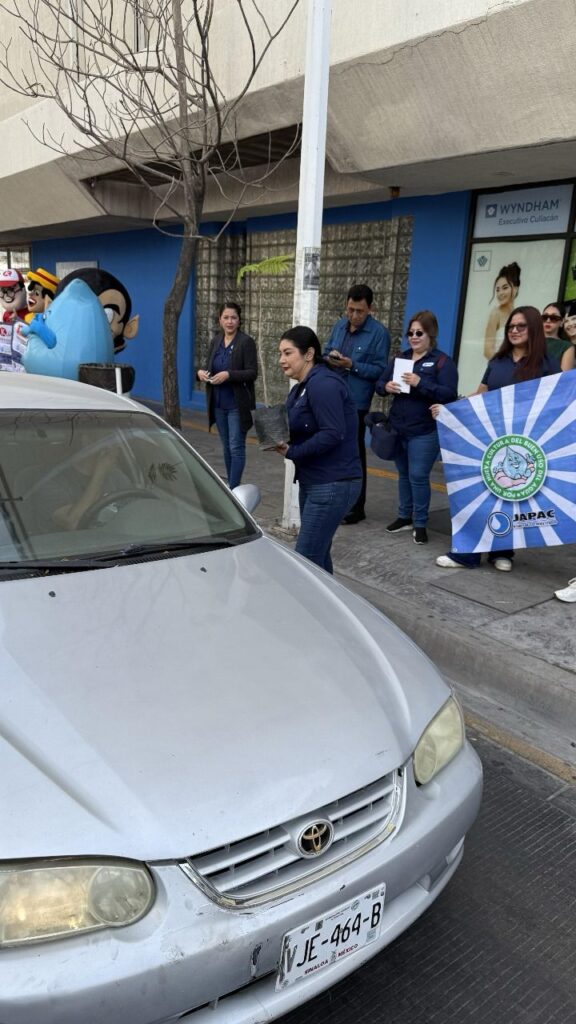 Culiacán, Sinaloa.- Con miras a la conmemoración del Día Mundial del Agua este 22 de marzo, esta mañana personal de JAPAC y CEAPAS compartieron con automovilistas y peatones volantes informativos con consejos para el uso eficiente del agua.