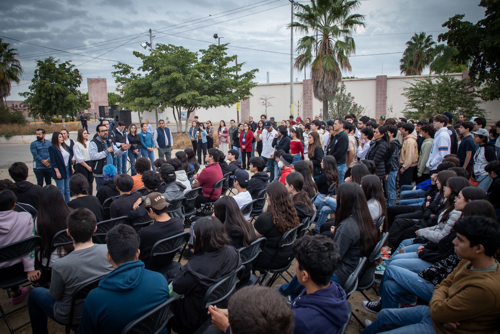 Culiacán, Sinaloa | La mañana de hoy, el alcalde Juan de Dios Gámez Mendívil, junto a la comunidad escolar de la universidad Tec Milenio, dio el banderazo de inicio de obra para la pavimentación del bulevar Manuel Sarabia, en el tramo comprendido frente a las instalaciones de dicho centro educativo.