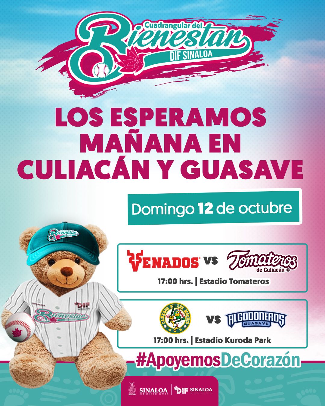 A la población de Culiacán y Guasave les compartimos que mañana domingo 12 de octubre los esperamos en Culiacán en el estadio de los Tomateros y en Guasave en el estadio Kuroda Park a las 5:00 pm.