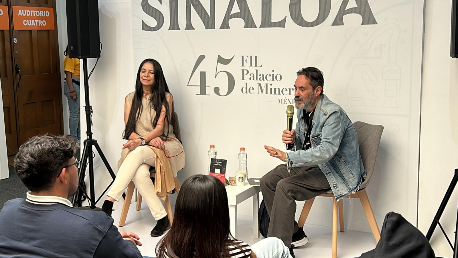 Sentados lo mismo en sillas que en el piso o acomodados de pie hasta en doble fila, las y los asistentes del Pabellón Sinaloa acompañaron a Boullosa en la lectura de algunos poemas que forman parte de este libro, entre ellos “Luna, día o qué”, “El águila y la bolsa”, “Entierro”, Mango de Manila” y “Elogio al ojo ceramista”.