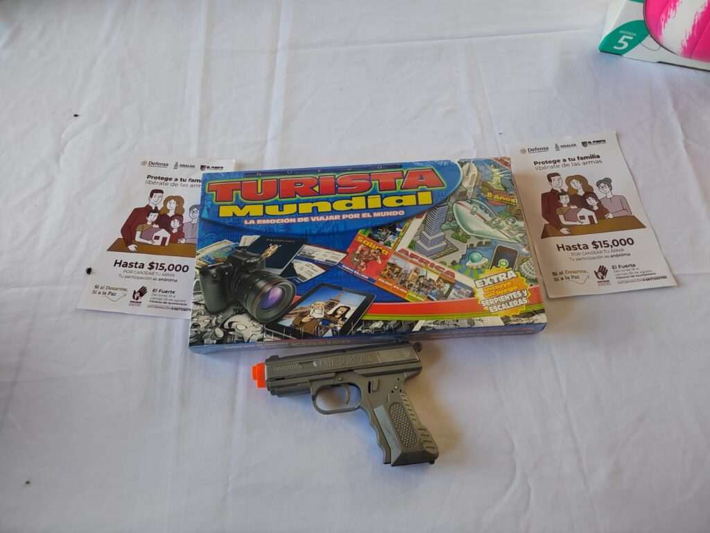 Culiacán, Sinaloa.- Con la finalidad de promover una infancia pacífica y llevar el mensaje de que la violencia no es un juego, la campaña de Desarme Voluntario Sinaloa 2025 no sólo recibe armas reales, sino también armas de juguete de parte de niñas y niños que acompañan a sus familiares en el proceso de canje.