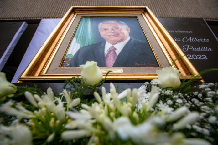 Culiacán, Sinaloa.- La tarde de este martes en el patio central de Palacio de Gobierno se llevó a cabo un homenaje de cuerpo presente al exgobernador de Sinaloa, Jesús Aguilar Padilla.