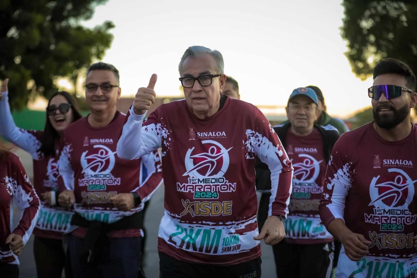 Culiacán, Sinaloa.- Contribuyendo a fortalecer el bienestar de la sociedad en una ambiente de sana convivencia y espíritu deportivo el Gobernador Rubén Rocha Moya, acompañado del Director del Instituto Sinaloense de Cultura Física y Deporte, Julio César Cascajares, dieron el banderazo de arranque del Primer Medio Maratón ISDE 2024.