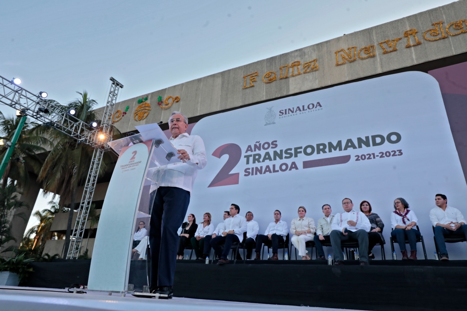 Culiacán, Sinaloa.- El gobernador Rubén Rocha Moya aprovechó su mensaje al pueblo de Sinaloa con motivo del evento “2 Años Transformando Sinaloa”, para reiterar que la Universidad Autónoma de Sinaloa tiene en su persona a un gobernador amigo, también universitario de convicción y un rosalino de toda la vida, y por esa razón la apoyará siempre, y continuará como un defensor incansable de la comunidad universitaria, no de la universidad-partido, precisó.