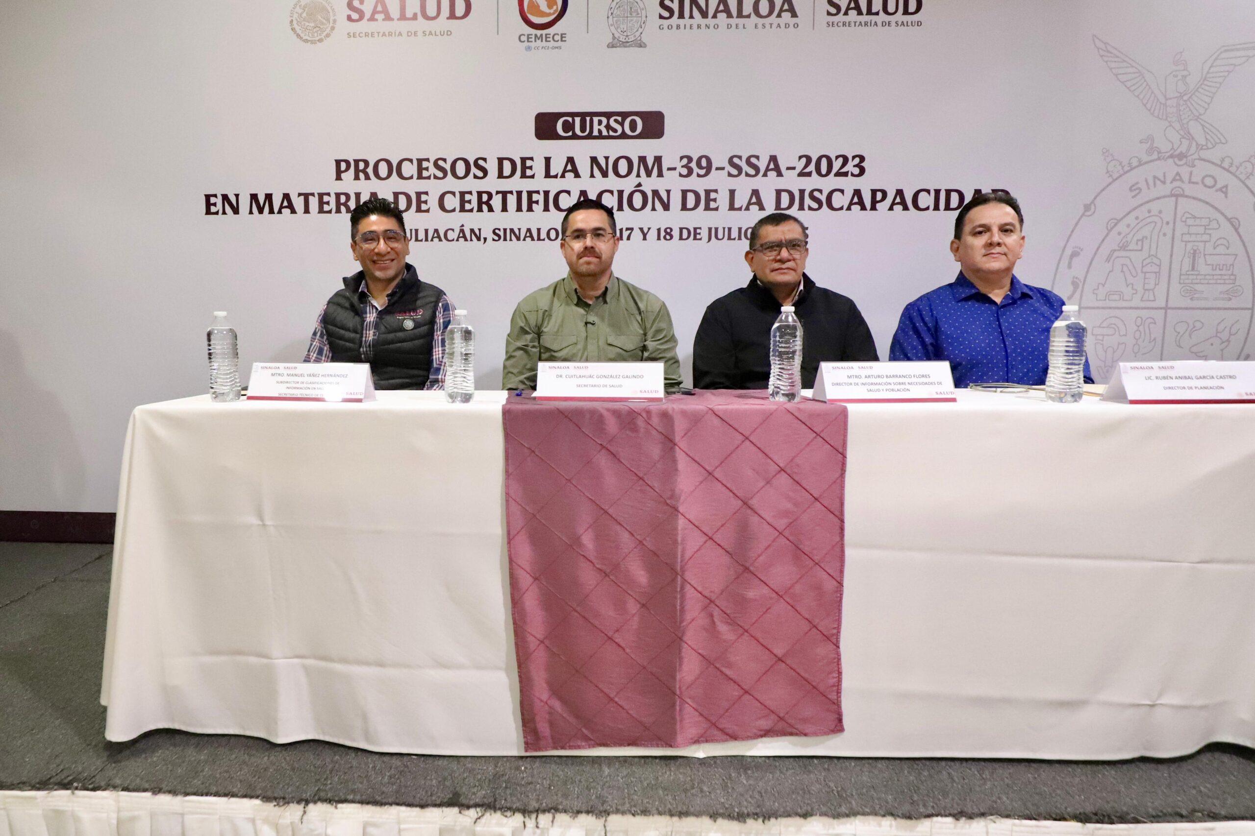 El secretario de Salud, Dr. Cuitláhuac González Galindo, mencionó que, actualmente ya fueron puestos en marcha los primeros tres Centros de Valoración de la Discapacidad y Expedición del Certificado Electrónico de Discapacidad (CEVADECE), los cuales están ubicados en el Hospital Civil de Culiacán, el Centro de Salud con Servicios Ampliados (CESSA) en Culiacán y Centro de Salud en Mazatlán, los cuales ya se encuentran habilitados para expedir dicho documento bajo la NOM-039-SSA-2023 en materia de Certificación de Discapacidad.