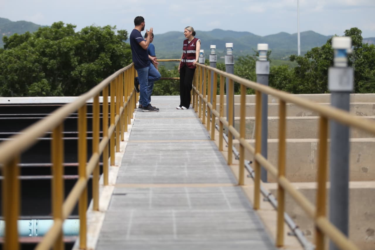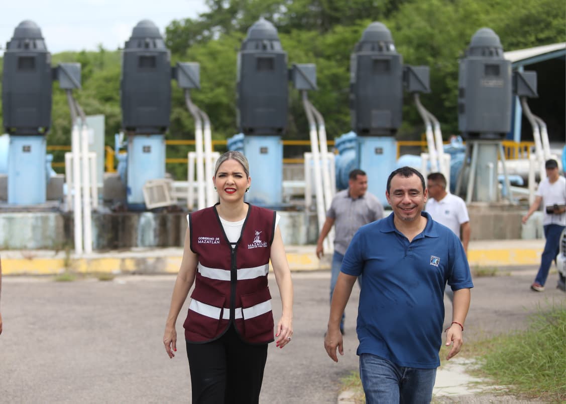 Estrella Palacios, al pendiente para garantizar que el vital líquido llegue a todos los hogares y empresas mazatlecas, constató que los trabajos para poner en operación la potabilizadora fueron atendidos de manera conjunta con CFE.