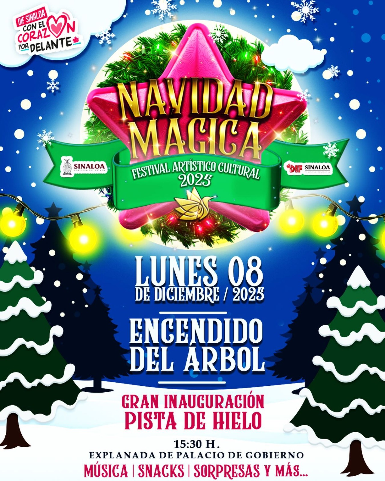 Además de la apertura de la pista de hielo se realizará el encendido del tradicional Árbol Navideño, acompañado de música, snacks, sorpresas y mucho más que tiene preparadas el Gobierno del Estado de Sinaloa para todas las familias y disfrutar una tarde llena de espíritu navideño.