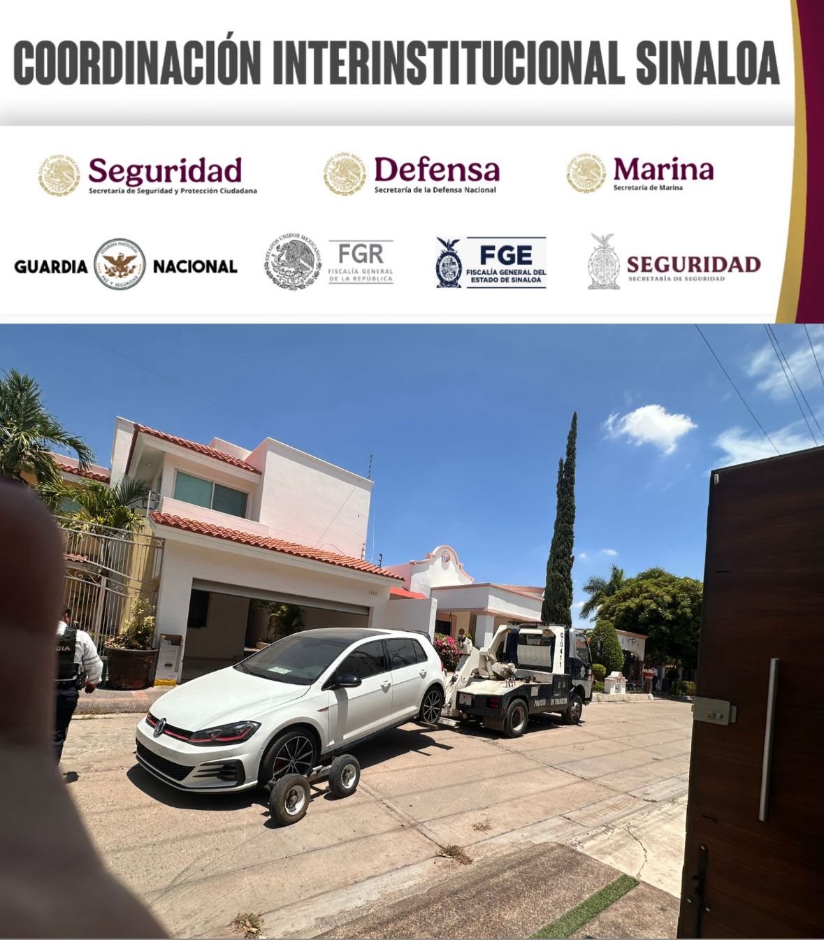 Culiacán, Sinaloa | En Culiacán, el personal de la Fiscalía General de la República, en coordinación con el Ejército Mexicano, la Guardia Nacional, la Secretaría de Marina, la Secretaría de Seguridad y Protección Ciudadana, la Fiscalía General del Estado y la Secretaría de Seguridad Pública de Sinaloa, a través de la Policía Estatal Preventiva, cumplimentó órdenes de cateo; en los inmuebles se aseguraron vehículos y armamento.