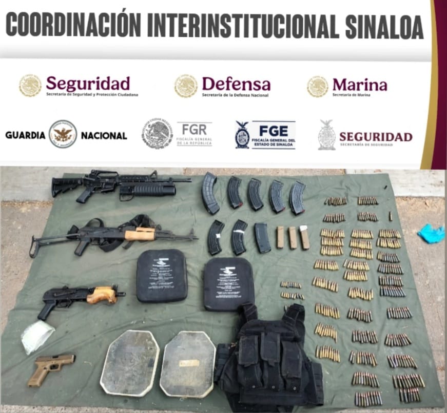 Elementos del Ejército Mexicano, en coordinación con la Guardia Nacional, la Secretaría de Marina, la Secretaría de Seguridad y Protección Ciudadana, la Fiscalía General de la República, la Fiscalía General del Estado y la Secretaría de Seguridad Pública del Estado, aseguraron en Culiacán a un civil, un vehículo, armas, un aditamento lanzagranadas, cargadores, cartuchos, efectivo y equipo táctico.