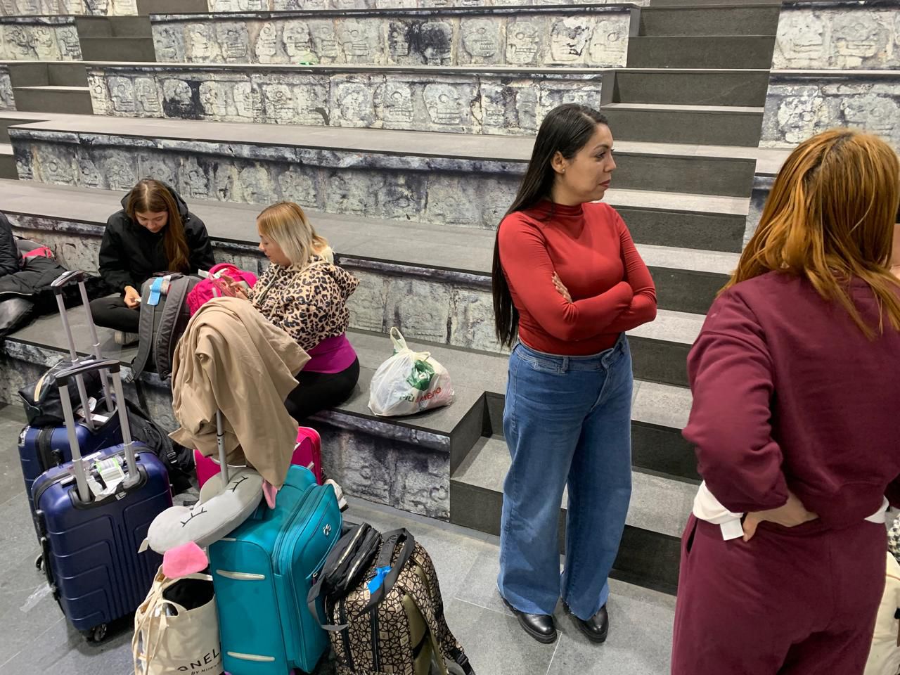 Mientras tanto, el grupo permanecía en el aeropuerto con poca comida, escasa información y rodeados de viajeros de distintas nacionalidades que buscaban desesperadamente salir del país. Michelle describió el ambiente como caótico.